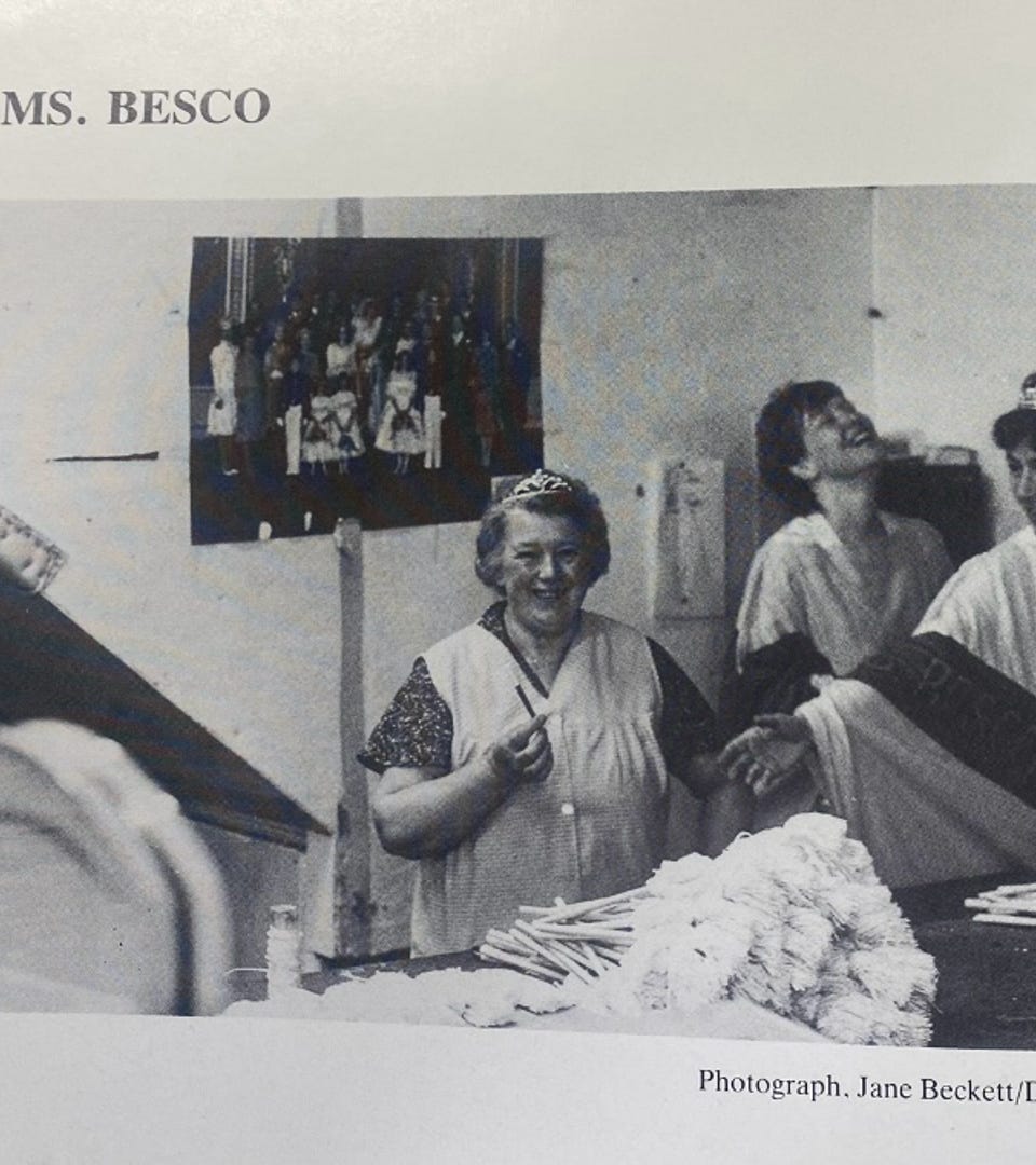 In 1984, as part of a residency in Rochdale, performance artists Evelyn Silver and Shirley Cameron visited the Besco textile factory, where they camply crowned their very own Ms Besco, a spin on the Textile Queens. The residency was charged by the reverberations of deindustrialisation: the miners’ strike had ended just a few months earlier, and the project was especially interested in the kinds of women’s work, through and with their bodies, that had been forgotten by history. They were also interested, like me, in creativity, curled away in dusty corners and below desks, where we’re told we’ll never find it. Their visit to Rochdale also posed some difficult question: what place do performance artists have in the factory? I wonder if, for one, they might alert us to the kinds of strange entanglements between work, bodies, and creativity that had long existed in working-class women’s spaces.